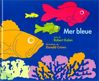Pour terminer l'affiche de Mer Bleue je demande aux élèves de coller les poissons dans l'ordre de l'histoire : les plus grands essaient de manger les plus petits.